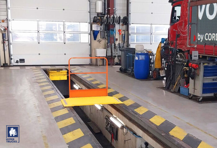 Utile et ergonomique, ce dispositif offre désormais la possibilité à nos mécaniciens de traverser la fosse en toute confiance et permet de garantir une sécurité optimale de nos équipes au sein de notre Atelier Hyper Trucks.